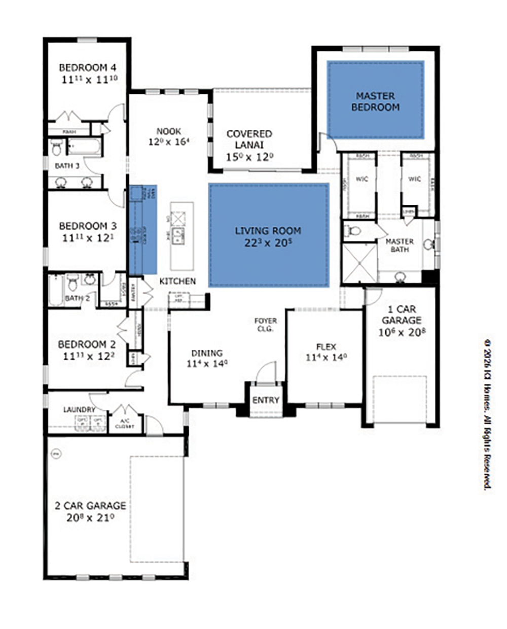 Welcome to the Egret VII, a spacious 4-bedroom, 4-bath home with over 3,000 square feet of elegant, functional living. The open layout features a bright living area with 12-foot ceilings, a deluxe kitchen with an island, and flexible space for a study or guest room. Enjoy a private owner’s suite with 2 walk-in closets and luxurious bath.